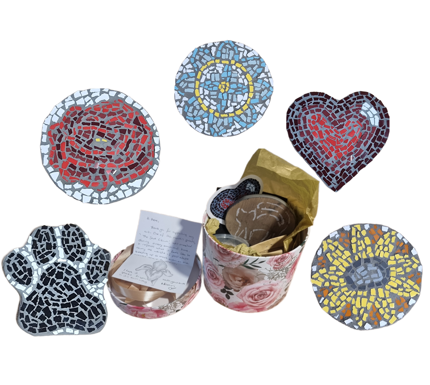 Big artistry in small packages — ready to create yourself. Our Mosaic Maker’s Studio Kits make mosaics fun and accessible, whether you choose a beginner coaster or dive into larger kits requiring tools. Beautifully packaged and perfect as gifts, they’re a thoughtful way to bring creativity and originality into any space.