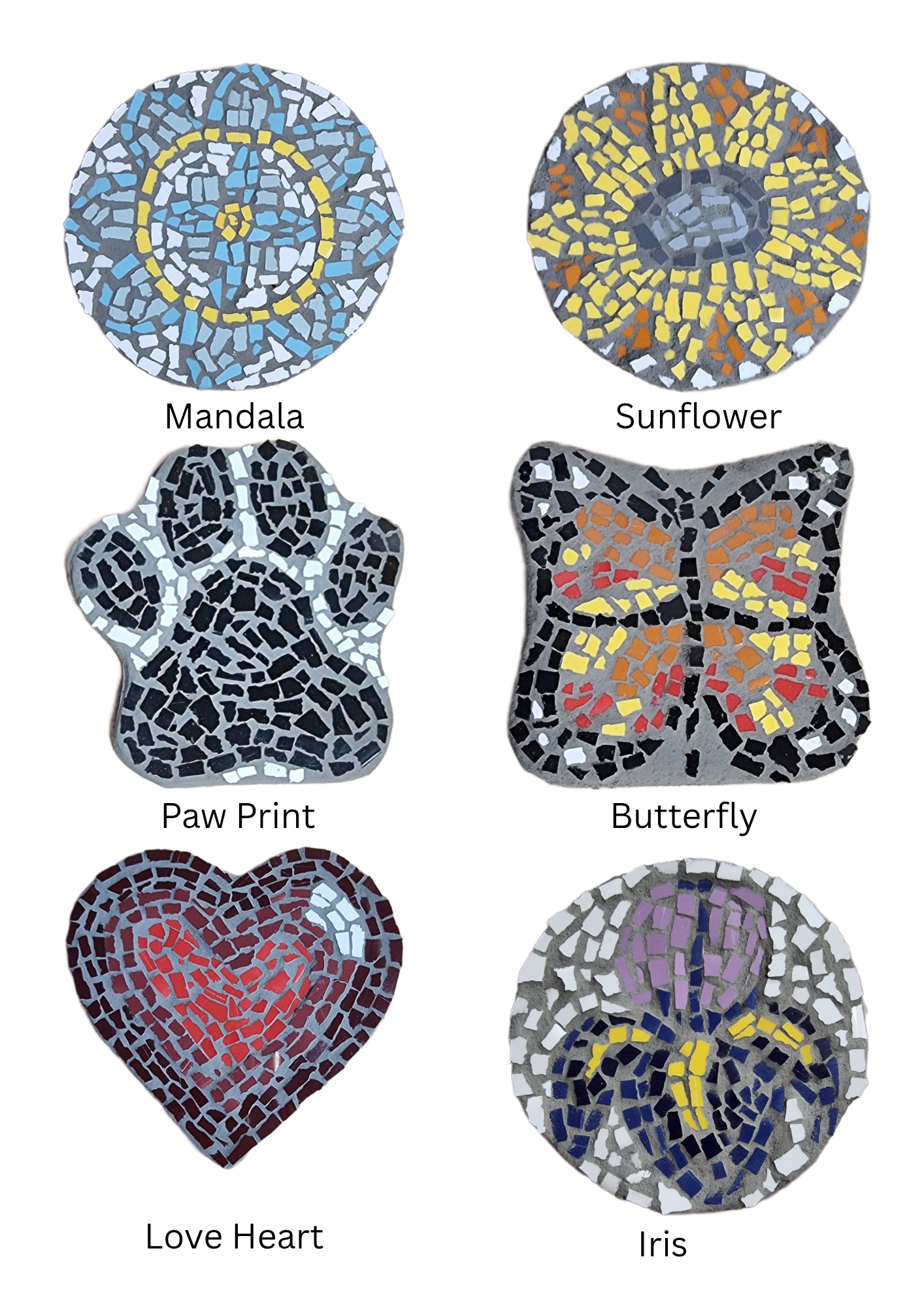 Whimsical mosaic art and beginner-friendly kits for people who love to create.