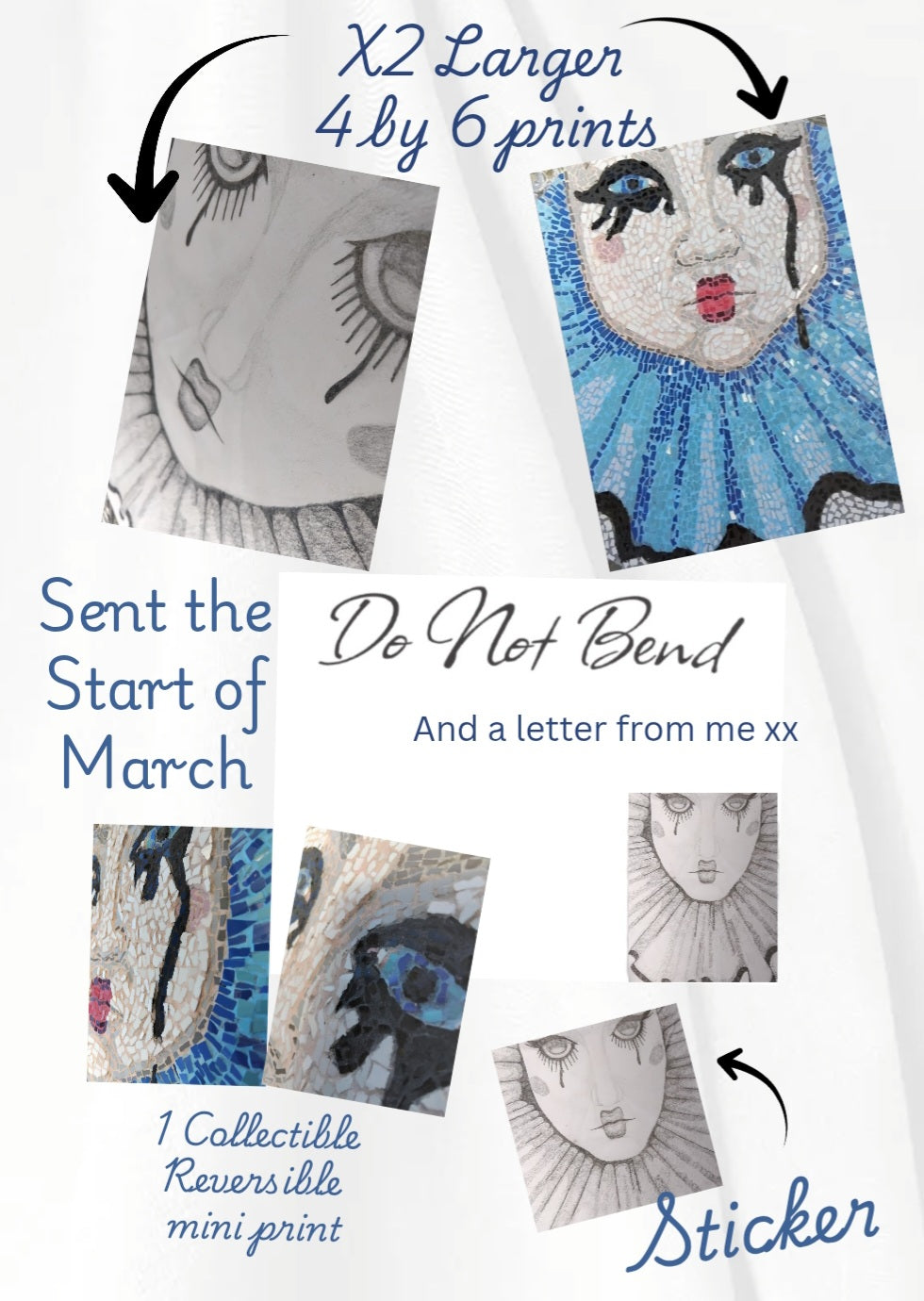 The Mosaic Mail Club is a monthly dose of art from my studio — prints, stickers, and exclusive artworks sent straight to your door.