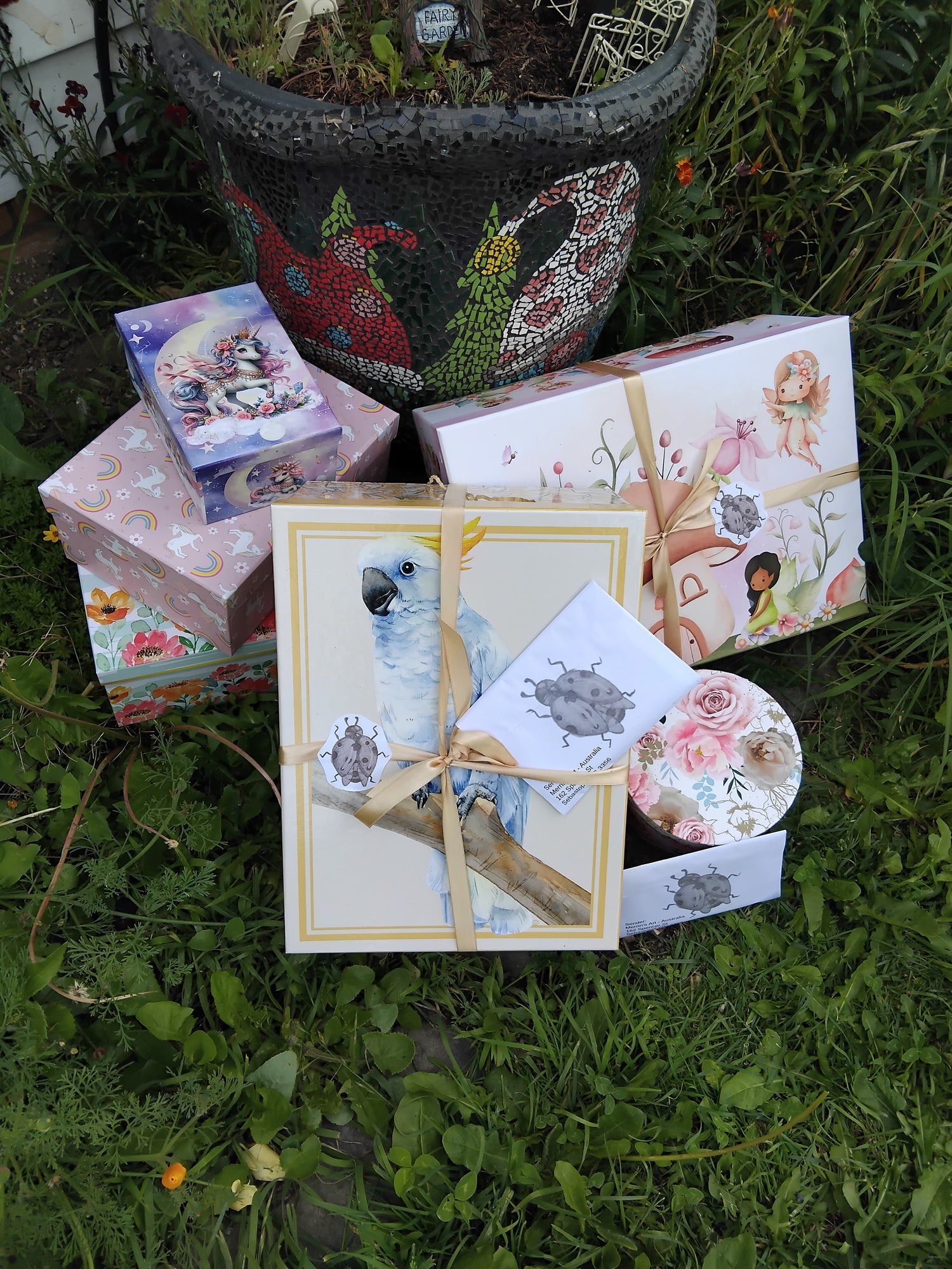 Everything is placed into a luxury reusable gift box, finished with a gold ribbon and packed securely. That parcel is then protected inside a postal box, so what arrives at your door feels just as it was meant to — considered, safe, and special