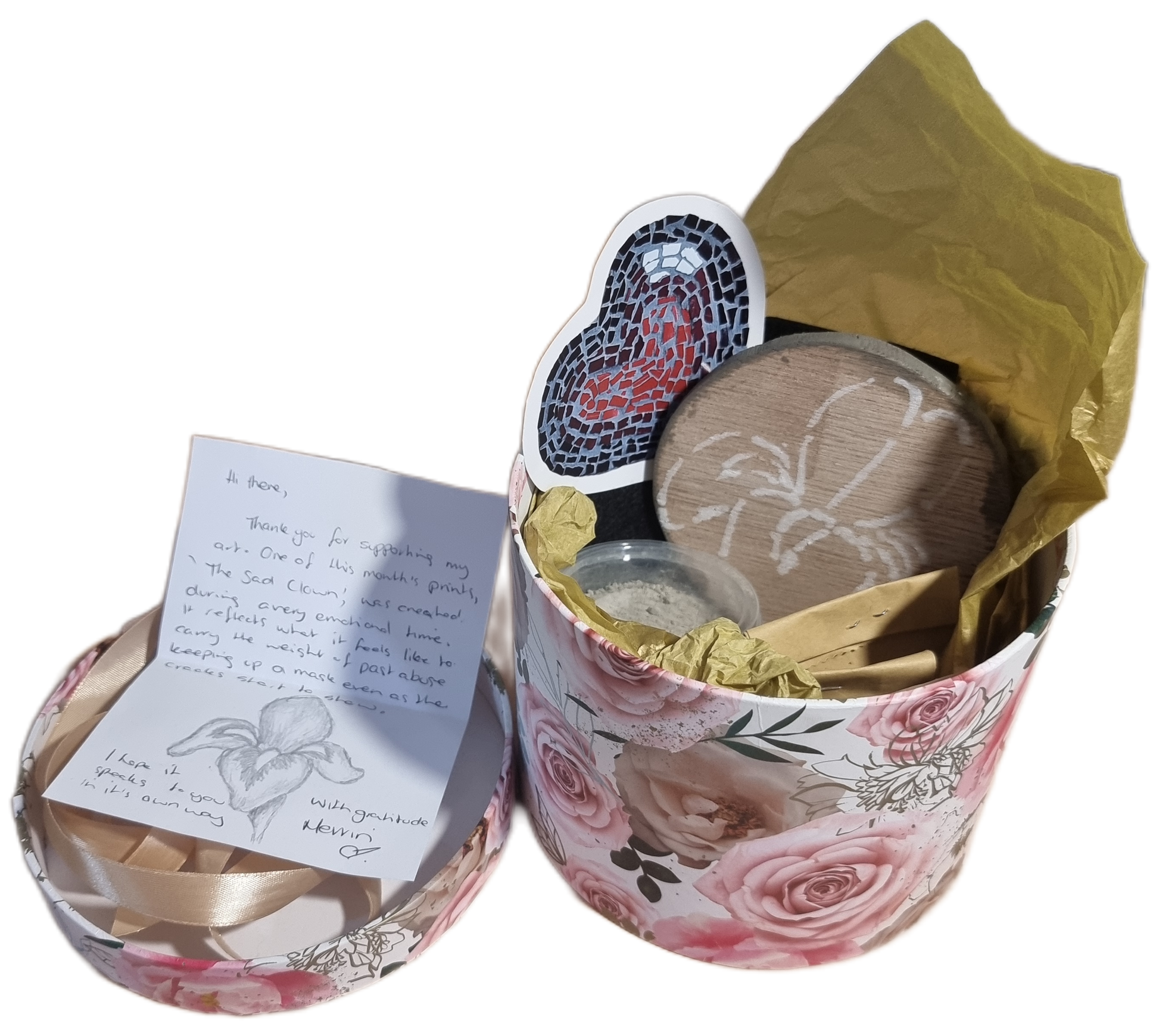 Art that gives back: 10% of all proceeds from our work support organisations fighting sexual violence, so every piece you bring home contributes to change.