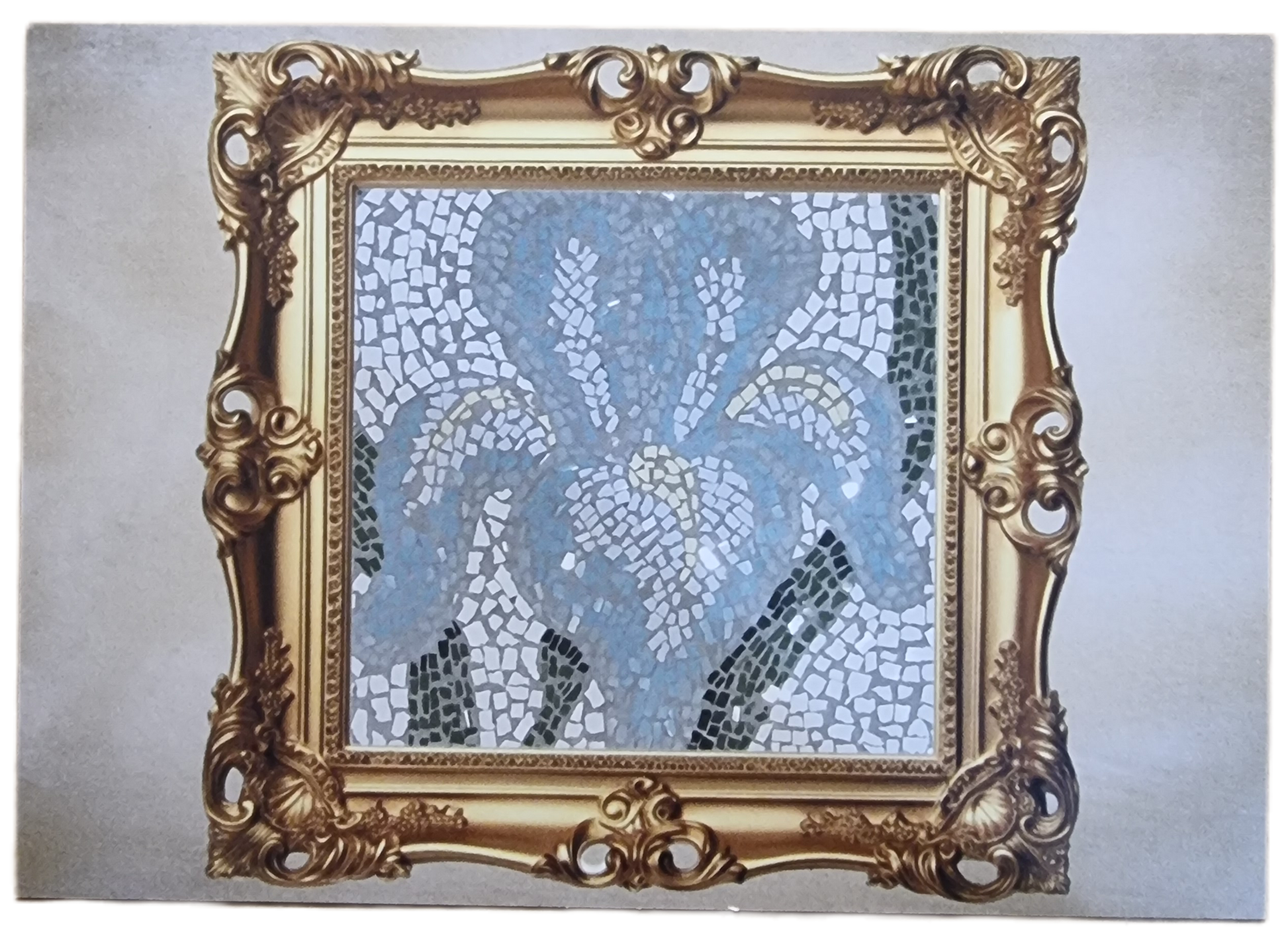 This Iris Mosaic Print celebrates the grace and regale of the iris — a flower often symbolising hope and wisdom — translated through the intricate textures of hand-cut mosaic.